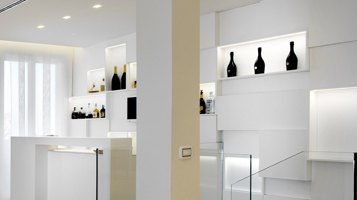 Le librerie in cartongesso consentono inoltre l’inserimento di led, ottenendo effetti scenografici di grande suggestione.